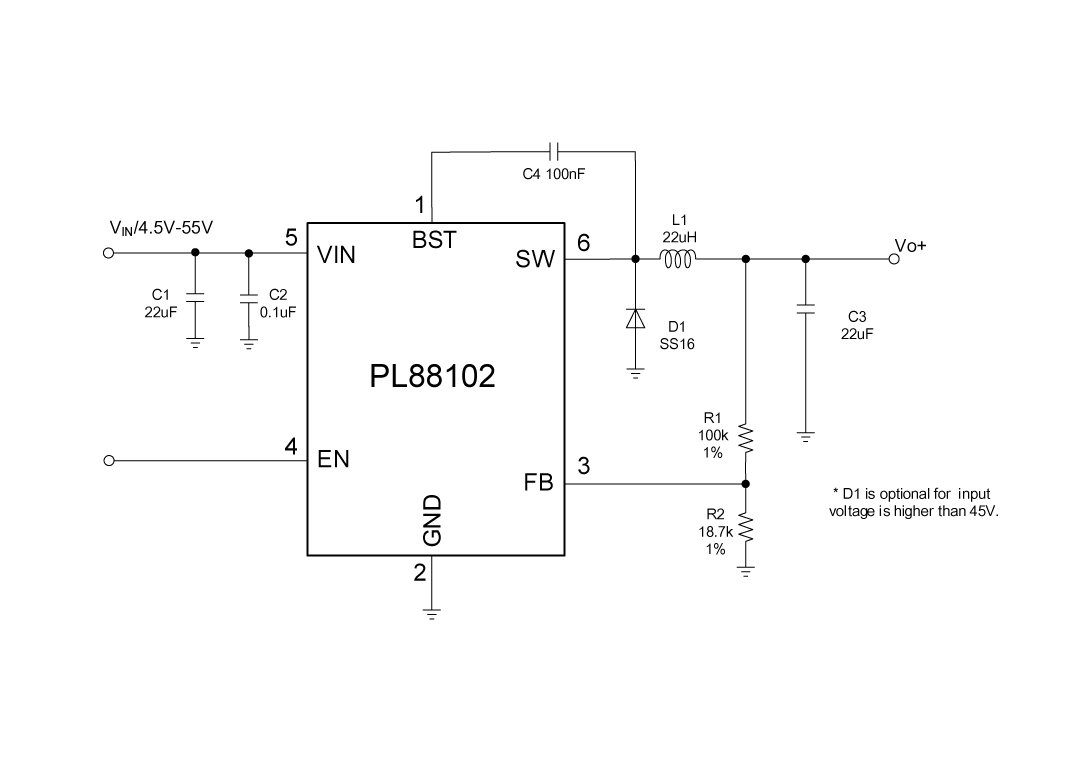 PL88102是一種款單面55V,600mA穩壓旋轉電開關調理器。它集變成了這個80V 550mΩ高側和這個80V 350mΩ低側工作效率旋轉電開關,以在4.5V至55V的寬工作輸出精度電壓交流電電壓經營規模內供求平衡量600mA的繼承負荷電壓交流電。谷值電壓交流電的形式規范供求平衡量飛速瞬態渾然一體和逐周期長電壓交流電限量。